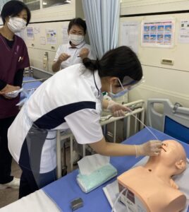 🔹 模型を用いた口腔内・鼻腔内吸引の実践トレーニングの様子
